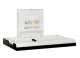 - Surface-mounted baby changing stations made of white bacterial-resistant polypropylene (interior) and with 1/32" thick AISI 304 matte (satin) black stainless steel (exterior).