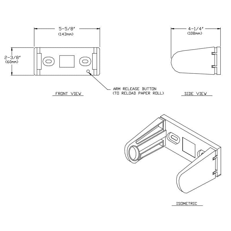 • Accommodates standard core toilet paper rolls up to 5" in diameter.