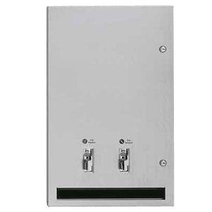 Unit is mounted in wall recess using No10 self-tapping screws (by others). Note that coin slot is 6-7/8" (175mm) above bottom edge of rough wall opening. PRODUCT OVERVIEW Dispenses 30 napkins and 27 tampons. Available for 25¢, 50¢, or free operation. INSTALLATION Unit is mounted in wall recess using No10...