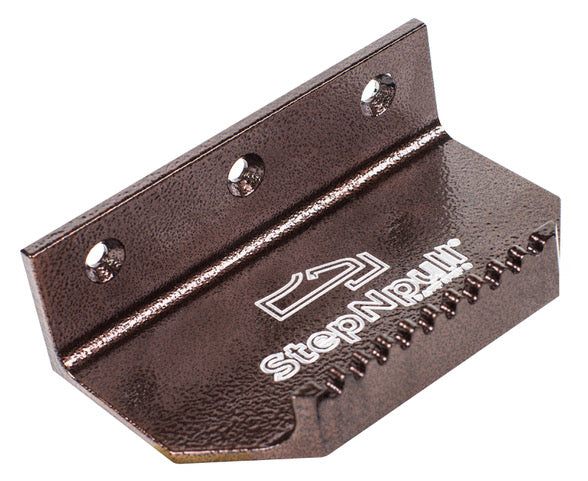Mounting: StepNpull mounts to the bottom corner of a commercial latch less metal or wood door via 3 mounting screws. The mounting hardware includes 3 #12 combo (metal or wood) screws and 1 sexed (barrel) bolt which goes completely thru the door. StepNpull can be mounted on a wooden door using just the screws but we highly recommend using the sexed bolt in the center hole instead of a screw. On metal doors the sexed bolt must be used in the center hole.